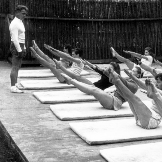 Born in Germany in 1880, Joseph Hubertus Pilates was a frail child who suffered from many ailments early in life. Because of this, he dedicated his entire life to becoming physically stronger. Joe had an array of athletic pursuits including body building and gymnastics. As a young man living in England, he earned a living as a boxer, self-defense trainer, and circus performer. Pilates was interned during World War I with other German citizens. It was here that he first began to develop his method while training other inmates.